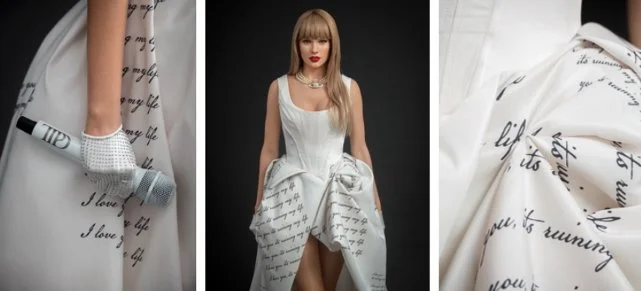 Taking inspiration from leg two of Taylor Swift | The Eras tour, the new figure is dressed in an iconic look from British design house Vivenne Westwood – the white taffeta corseted gown is delicately inscribed with lyrics from Taylor’s single Fortnight. The look is finished with matching white lace up Christian Louboutin ankle boots, donated by the fashion house, white crystal embellished gloves and bespoke microphone created by Rebel Stage Gear UK, the specialist customisation company behind the original microphones Taylor used during the tour.
