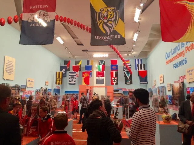 Little Miss and I attended the preview of the brand NEW exhibition to hit the NGV Australia today: 'Our Land is Alive - Hermannsburg Potters for Kids'. This new exhibition is all about Australian Rules Football and seems very fitting given that the AFL Grand Final is weeks away!