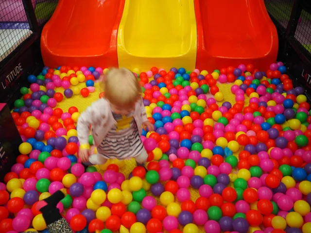 After doing a few laps of the playground, Arlo joined Macy up the stairs on the trampolines and the two of them looked extremely happy bouncing from wall to wall. Curiosity soon got the better of Macy who bounced off the trampoline and over to the foam pit and miniature climbing wall. Although they took great delight in being thrown into the foam pit, the poppets weren't that comfortable in the actual foam pit itself – which was a shame as Arlo really wanted to get over to the wall to climb up the bright red ladder!