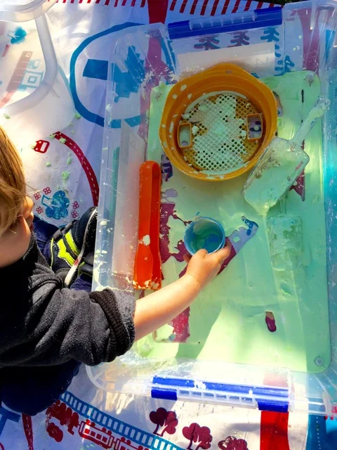 Little ones are free to create, make, paint, venture in the garden and go in the studio for more activities. Messy play is a great option for little ones who are too young for preschool or for siblings to enjoy a messy play together without carers having to clean up!