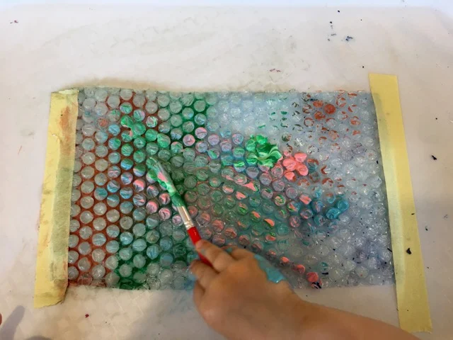 It's great that little ones can be free to go inside the studio or outside when they wish, we ventured inside again and little Mister painted some bubblewrap and some boxes which he also decorated with different bits and pieces. Toddlers loved this activity, they were so focused it was fun to watch them!