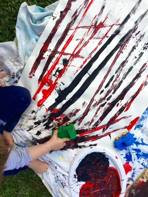 We finished off the session by painting with cars and more water play just in time for the drive home!