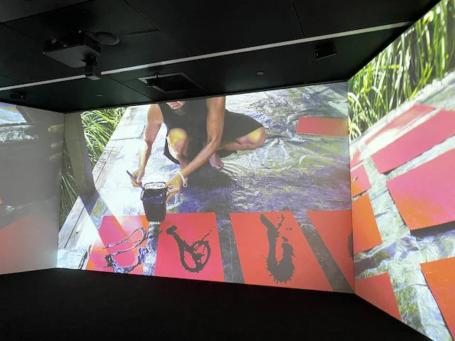 I recommend heading to the Immersive studio: Lindy Lee before entering the exhibition as this will give you an idea of the artist and her work. The kids thoroughly enjoyed the video and once we were in the exhibition, they were able to relate to the art and the artist and find works that she demonstrated in the video. You can see the video here too: https://www.mca.com.au/stories-and-ideas/lindy-lee-moon-dew-drop/
