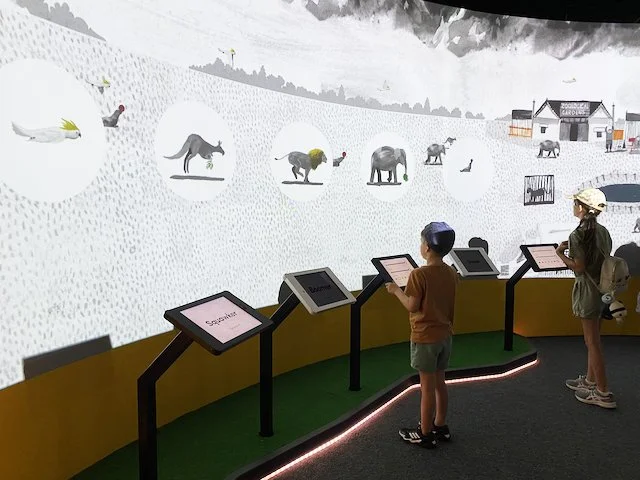 As soon as we entered the exhibition, the kids started creating their version of the Zoo animals by choosing the type of animal, choosing their size, their speed and colour features. Once created, they watched the animals walk, run, flop and fly through the beautifully illustrated streets of Sydney shown on screen. Kids can choose either a cockatoo, kangaroo with baby joey, a lion, elephant and seal.