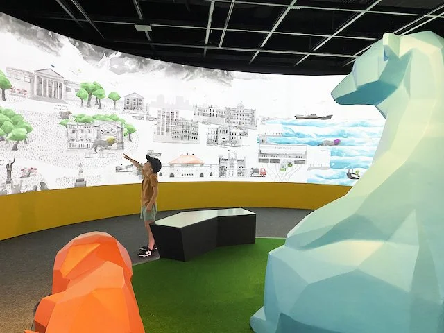 After we left the exhibition, little Miss and her brother created a Zoo selfie on the screen provided and added animal elements to their pics which was then sent to our email and displayed on the main screen of the museum.