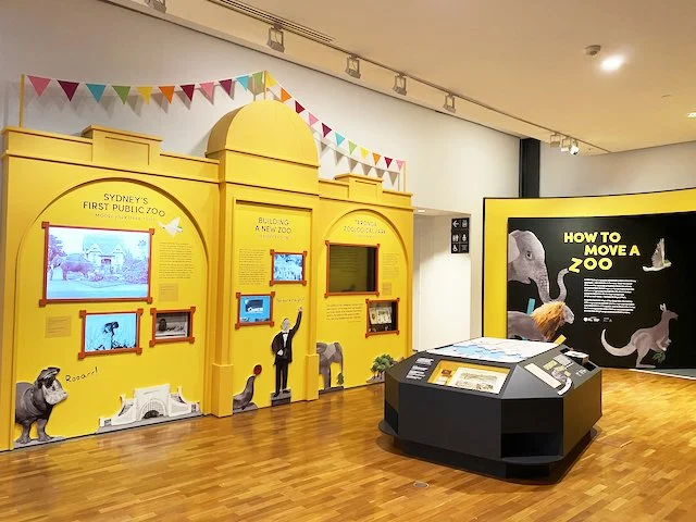After following the paw prints, we headed upstairs to see the exhibition. How to Move a Zoo is based on Sydney’s first public zoo - Royal Zoological Society of New South Wales which was established in 1884 and was located in Billy Goat Swamp in Moore Park which is now occupied by Sydney Boys and Sydney Girls High Schools. After the site was deemed too small, too dusty, noisy and not in the best interest of the animals due to the cages, it moved to the now Taronga Zoo site in Mosman in 1916.