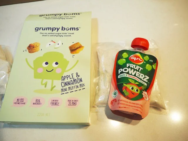 We really liked the Grumpy Bums baking mixes, they were super easy to put together, mix up & bake quickly and they also had great natural fruit flavours from the purées, freeze dried fruit or dried paste. The rest of the ingredients in the pack mixes weren’t loaded with nasty colours, preservatives or numbers that we didn’t understand. Real simple, real tasty and really easy for kids & families to bake together and great for a snack or the lunchbox and lunchbox friendly as they contain no nuts. We can’t wait to grab the Banana & Muesli Cookie Mix next time we’re at the shops and try those too!